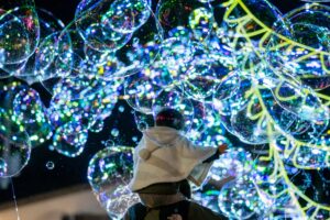 12月21日(土)大丸京都店屋上にて、19時~19時30分までバブルスターナイト(夜のシャボン玉)を行います!昼間のシャボン玉と異なり、シャボン玉の幻想的な世界にあなたを魅了します。