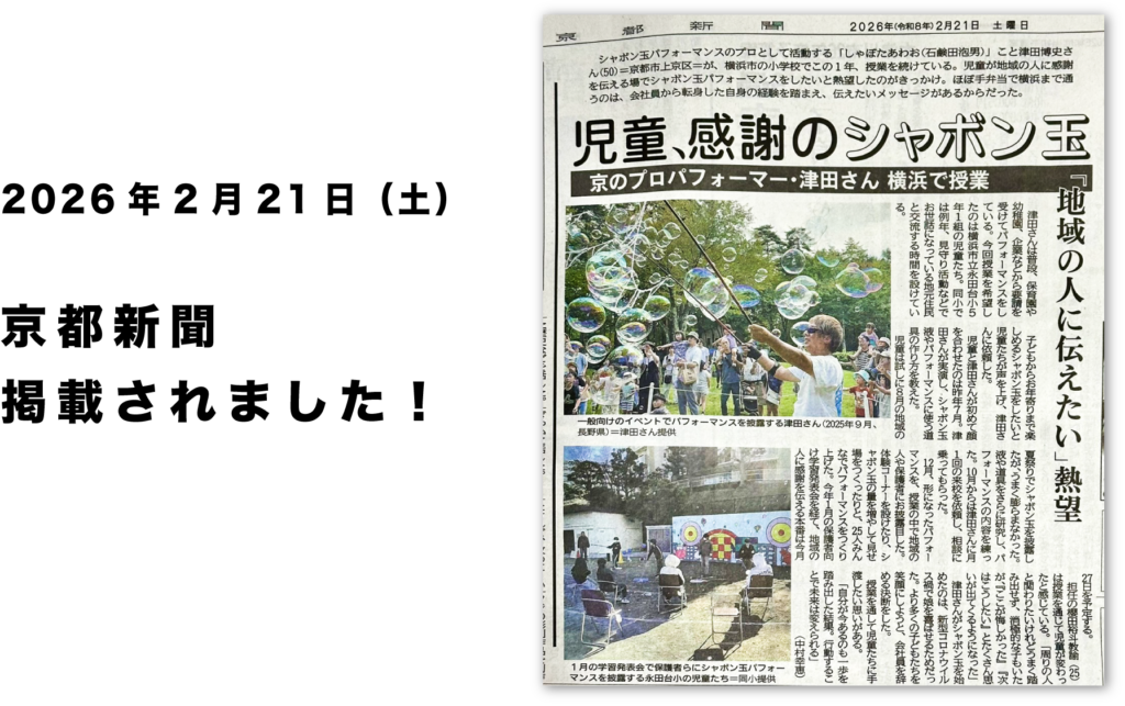 京都のシャボン玉のプロ(プロシャボラー)です。